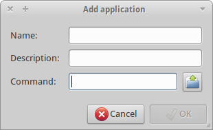 - On the dialog that opens (fig.2) write the name of the application and the command that runs the application (description isn't mandatory).