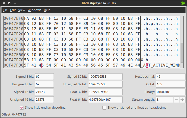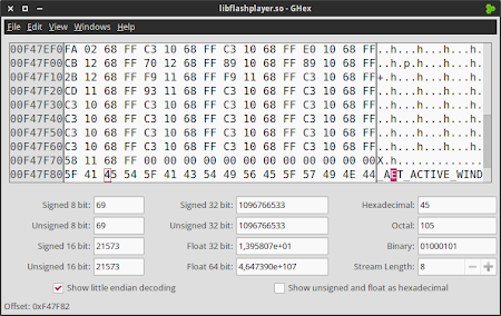 libflashplayer.so; open a terminal window and run: On GHex main window select Edit > Find and type